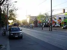 Between Bathurst Street and Gladstone Avenue is West Queen West, also known as the Art and Design District. For this two-kilometer stretch, nearly every storefront on the north side is either a gallery, bar, or nightclub (the south side of the street is largely taken up by the buildings and grounds of the former Queen Street Mental Health Centre, now part of CAMH), a combination that has led to the district being named one of the coolest neighborhoods in the world both in 2015 and 2016.[23][24] The Stephen Bulger Gallery, founded in 1994, is also located on Queen West, as was the Museum of Contemporary Canadian Art (MOCCA), which relocated to the area in 2005.