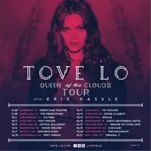 The Queen of the Clouds Tour was the first headlining concert tour by Swedish recording artist Tove Lo in support of her debut studio album, Queen of the Clouds (2014). The tour was officially announced nine months after the release of the album, on June 22, 2015. The tour began on September 28, 2015, in San Diego at the North Park Theatre and was scheduled to conclude on November 14, 2015, in Tove Lo's home city of Stockholm, Sweden, with a total of twenty shows over the span of three months. Due to illness, Tove Lo was forced to cancel the tour's four European.[1][2][3]