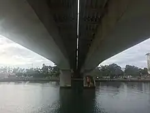 The Queensway Twin Bridges (sometimes Queens Way Bridges or Queensway Bay Bridge) connect downtown Long Beach with the outer Port of Long Beach. They are the southernmost crossing of the Los Angeles River, near the mouth of the river, where it empties into Queensway Bay, and they are the primary arterial link between Long Beach and RMS Queen Mary. The bridges were completed in June 1970[1] and opened on October 5, 1970.[2]