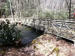 ![]() The Quehanna Trail's bridge over Wykoff Run, on the eastern segment of the loop. | |