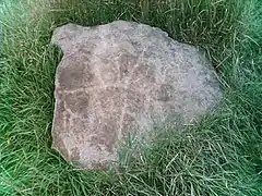 The Quelm Stone is a standing stone located near the Quelm Park Roundabout on Harvest Ride, at OS grid reference SU 8697 7087. It is made of sandstone, measures 1460mm long, 995mm wide and 260mm deep, and is estimated to weigh 1,158 kg. It is thought to have been deposited here about 14,000 years ago by a retreating glacier during the last glacial period.[3]