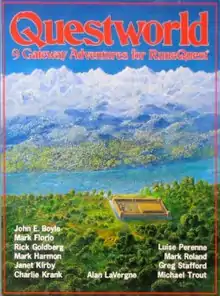 Questworld was written by John E. Boyle, Mark Florio, Rick Goldberg, Mark Harmon, Janet Kirby, Alan LaVergne, Greg Stafford, and Michael Trout, with art by Luise Perenne. It contains