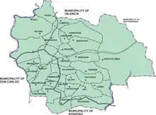 The municipality of Quezon has a total land area of 71,128.00[8] hectares per CAD 895-D with 31 barangays. It represents 6.78% of the total land area of the province of Bukidnon.