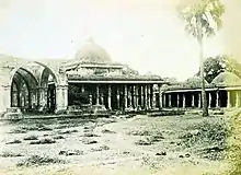 The nobles of the courts of Ahmed Shah, Sultan Qutubuddin Ahmad Shah II raised a small shrine first. Afterwards a mosque, a tomb to one of his sons, a large many-sided pond, and a vast mausoleum was built Mahmud Begada. The mosque and son's tomb are in the flat Hindu style without arches or minarets. But in the large mausoleum, with a great gain in size, the arch takes the place of the beam, and the dome is raised high in air by a second tier of arches. The arch, uniformly used with one consistent design, has much beauty and propriety. The tomb is of the most elaborate workmanship surmounted by a richly inlaid canopy. But although the building is incomplete, it wants the outer aisles and has no stone trellis work in its windows.[2][3]
