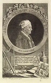Pál's son, Gedeon Ráday, cemented the family's meteoric rise through his numerous contributions to Hungarian literature as a renowned writer, poet and collector.[12] Between 1755 and 1774, Gedeon transformed his father's estate at Pécel into a baroque palace with the help of architect, János Mayerhoffer.[10] Eventually, Ráday was elevated to the rank of baron on 8 February 1782 and on 18 February 1790, he was made a count by Joseph II.