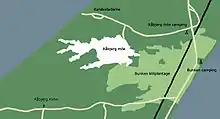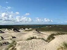 Råbjerg Mile is a migrating coastal dune between Skagen and Frederikshavn, Denmark. It is the largest moving dune in Northern Europe with an area of around 2 km2 (0.4 mi2) and a height of 40 m (130 ft) above sea level. It is also the only major stretch of migrating dunes in Denmark.[1] The dune contains a total of 4 million m3 of sand. The wind moves it in a north-easterly direction up to 18 metres (59 ft) a year. The dune leaves a low, moist layer of sand behind it, trailing back westwards towards Skagerrak, where the Mile originally formed more than 300 years ago.[2] Over 250,000 people visit the dune every year.[3]