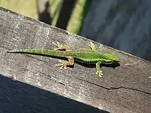 The Reunion Island day gecko (Phelsuma borbonica) is a species of gecko. It is diurnal and lives in northern Réunion. It typically dwells on banana trees and feeds on insects and nectar.