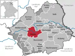 Location of Röslau within Wunsiedel im Fichtelgebirge district