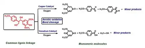 - ↑ Hanson, Susan K.; Baker, R. Tom (21 July 2015). "Knocking on Wood: Base Metal Complexes as Catalysts for Selective Oxidation of Lignin Models and Extracts". Accounts of Chemical Research. 48 (7): 2037–2048. doi:10.1021/acs.accounts.5b00104. PMID 26151603.