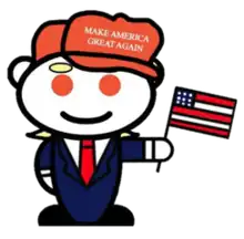 Reddit mascot "Snoo" dressed in MAGA attire serves as mascot of r/The_Donald.