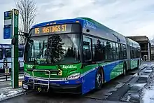The R5 Hastings St is an express bus service with bus rapid transit elements in Metro Vancouver, Canada. Part of TransLink's RapidBus network, it travels along Hastings Street, a major east–west route, and connects Simon Fraser University to the SkyTrain system's Burrard station on the Expo Line in Downtown Vancouver. It replaced the 95 B-Line route on January 6, 2020.[3][4]