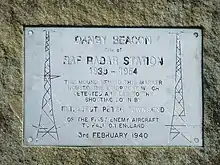 Royal Air Force Danby Beacon or more simply RAF Danby Beacon was an early warning radar Royal Air Force station that formed part of the Chain Home network of radar (or Radio Direction Finding (RDF)) stations built by the Royal Air Force immediately prior to the Second World War.