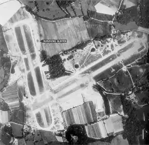 Today the airfield is a mixture of agricultural fields with a private grass airfield using the North/South runway.