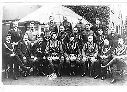 In the lodges there is a small amount of ritual and ceremony.[12] Officers wear ornate chain collars and their respective jewels. The use of aprons is not widespread at regular meetings of Buffalo lodges. New members are "initiated". After two years and having gained their intermediate certificate, the new member is then "raised" to the degree of a Certified Primo. The Knight Order of Merit and Roll of Honour degrees are granted to those who have been members of ten years or more after the raising to the second degree.[13]