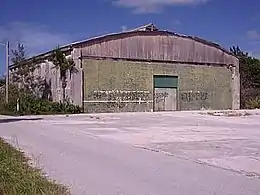 The surviving hangar at the Fleet Air Arm's Royal Naval Air Station on Boaz Island