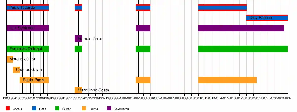- Paulo Ricardo: bass guitar, backing and lead vocals (1983–1989; 2001–2004; 2011–2018)