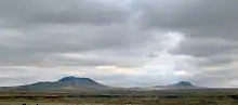The Rabbit Ears are a pair of mountain peaks in northeastern New Mexico, United States, 8 kilometres (5.0 mi) north of the city of Clayton. The two peaks were a distinctive landmark along the Cimarron Cutoff of the Santa Fe Trail, a major route for westbound settlers in the 19th century. The formation was designated a National Historic Landmark in 1963.[1][3] The name is that of a Native American chief who was killed here in a battle with the Spanish in 1717.[4]