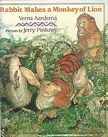 Rabbit Makes a Monkey of Lion: A Swahili Tale is a 1989 children's picture book by Verna Aardema and illustrated by Jerry Pinkney. It is an adaption of a Swahili folktale and is about Rabbit tricking Lion over a calabash tree.