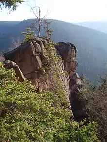The Rabenklippe is a granite rock formation in the Harz National Park. The name means "Raven Crag" and is very apt as ravens live in the vicinity.