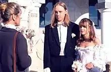 In 1995 a highly topical storyline went underway between the two characters when they married in a ceremony that would benefit them a larger student allowance for tertiary education.[15][62] Not only did the storyline break up the romance storyline between Nick and Rachel's cousin Waverley (Claire Chitham),[62] but it was also a reflection on current events of the time.[63] Producers used the wedding tactically to draw in viewers, releasing much of the storyline to a news outlet prior to the storyline unfolding so that viewers would commit beforehand to watch it.[1] The storyline reportedly struck a chord with students despite the marriage being solely for convenience.[64] As the wedding storyline aired, Bloomfield noted the special bond between the two characters, "With what we're doing now, the two of us are really close. So it just shows that no matter what kind of break there is between seeing each other, Rachel and Nick will always be there for each other".[5] Throughout the mid to late nineties, the characters of Rachel, Nick, Fergus Kearney, and Minnie Crozier often shared scenes together due to their age and installed the soap archetype of "hip, young things".[65] This further developed the relationship between the two characters. In 1998 Bloomfield was shocked to discover an upcoming storyline would see her character fall in love with Nick.[60] She soon learned that it was all part of a comical storyline for the two, "The script said, 'She's so in love with Nick, she wants this...' and I am like, 'No, calm down, it will be a joke.' The next minute Karl walked in the room and every- one just cracked up laughing. I felt so embarrassed. Then I went back and read the scenes before it and saw that Rachel had been struck by lightning."[60] She described the lightning storyline as "something from Days of Our Lives – just without the amnesia!"[15]