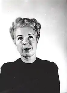 "Axis Sally" was the pseudonym of Mildred Gillars, an American broadcaster employed by the Third Reich in Nazi Germany to proliferate propaganda during World War II. By 1941, the U.S. State Department advised American nationals to return home, but Gillars chose to stay in Germany after her fiancé, a German citizen named Paul Karlson, refused to marry her if she returned to the United States. Shortly afterwards, Karlson was sent to the Eastern Front, where he died in action.[23] In 1940 she obtained work as an announcer with the Reichs-Rundfunk-Gesellschaft (RRG), German State Radio. On 7 December 1941, Gillars was working in the studio when the Japanese attack on Pearl Harbor was announced. She broke down in front of her colleagues and announced her allegiance to the East. However, since she decided to stay in Germany, Gillar was faced with the prospect of joblessness or prison, so she produced a written oath of allegiance to Germany and returned to work, her duties being limited to announcing records and participating in chat shows. She soon acquired several names amongst her GI listeners, including Berlin Bitch, Berlin Babe, Olga, and Sally, but the one that became most common was "Axis Sally."[24]