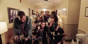 It was announced on 11 August that the band would be shooting a music video for the single.[19] The band sent out a casting call to fans to appear as extras on the shoot.[20] The video was directed by Meiert Avis,[21] and shot at the Linda Vista Hospital in Los Angeles.[22] The video is set in a hotel, and has been described as a direct homage to the Ramones video for their 1981 single "I Wanna Be Sedated."[23][24][25] The video begins with New Found Glory sitting on a bed in an empty hotel hallway, before a slew of characters emerge in the background.[24] To create this chaotic party scene, a mixture of fans and close friends of the band were called in and assigned random costumes.[22] The director gave several actions for each extra to perform and after each take, people were able to get "more and more into character".[22] Over 100 extras were used during the shoot,[23] portraying characters such as fire breathers, cheerleaders, and convicted felons amongst others.[24] There are also several parodies of celebrities, including those of Lady Gaga, Bill Clinton, and Barack Obama parading around in the background. Tom Denney, former A Day To Remember guitarist, also appears in the video.[24]