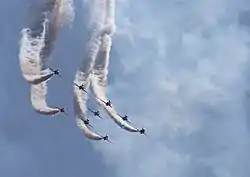 ![]() The Red Arrows performing at Radom Air Show 2005 | |