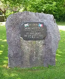 Since 1986 Radyr and Morganstown has been twinned with Saint-Philbert-de-Grand-Lieu, a town south-west of Nantes (Cardiff's twin city) on the southern shores of the Lac de Grand Lieu in Loire-Atlantique, France.[2] The first exchange visit took place in May 1986 and Twinning Charters were signed by Chairmen of both community councils. On the 10th anniversary of the twinning fellowship, Radyr presented the people of St Philbert with a red telephone box.[3]