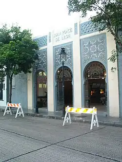 Among Carmoega's works are Mercado de las Carnes in Ponce. Carmoega also designed the Capitol Building, the University of Puerto Rico Main Campus at Rio Piedras, the School of Tropical Medicine, and the Mayaguez City Hall, all listed on the National Register. In his interest to preserve Hispanic traditions in the wake of the recent change of sovereignty of Puerto Rico from Spain to the United States, Carmoega utilized the Spanish Baroque and Neo-Mudejar vocabularies in his designs, emphasizing the use of glazed, mosaic tiles in many buildings.[3] The Plaza de los Perros in Ponce is a fine example of this latter style, incorporating glazed mosaics, horseshoe arches, and galleries in a mosque-like space for commercial usage.[3]