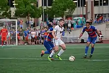 For the summer of 2017, Mentzingen moved to the National Premier Soccer League and signed for Lansing United.[23] He debuted for the club on 14 May, playing 74 minutes and scoring a goal in a 2–0 victory over Milwaukee Torrent.[24] Mentzingen continued his goal-scoring form through the first half of the season, tallying two goals against F.C. Indiana on 19 May and again versus AFC Ann Arbor on 26 May.[24][25] After scoring a brace in a 4–2 win over Grand Rapids FC on 10 June, he was named as the NPSL national player of the week.[26] His season was ended in late June due to injury, but Mentzingen finished the year with nine goals in nine matches and was honored as the Lansing United player of the year.[27]