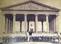 By decree 604 of 29 October 1899, written by Estrada Cabrera himself, the celebration of "Fiestas Minervalias" was established, in order to close the school year; celebrations were to occur on the last Sunday of October, each year.[18] Over the years, these celebrations had children and military parades, military exercises, and award ceremonies in the Temple of Minerva. After the official speeches, and the ceremonies, there was a lunch given by the elite ladies and, after the children celebrations, there were adult dancing and partying at night.[19]