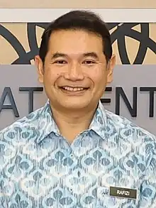 Mohd Rafizi bin Ramli (Jawi: محمد رافيزي بن رملي; born 14 September 1977) is a Malaysian politician who has served as the Minister of Economy in the Unity Government administration under Prime Minister Anwar Ibrahim since December 2022 and the Member of Parliament (MP) for Pandan from May 2013 to May 2018 and again since November 2022. He is a member of the People's Justice Party (PKR), a component party of presently the PH and formerly the Pakatan Rakyat (PR) coalitions. He has also served as the 5th Deputy President of PKR since July 2022. He served as Vice-President of PKR from August 2014 to July 2022,[1] Secretary-General of PKR from October 2014 to November 2016 and Strategic Director of PKR from December 2010 to October 2014.[2] He is the founder of both the whistleblower organisation, National Oversight and Whistleblowers Centre (NOW)[3] and the election volunteerism organisation, Invoke Malaysia (INVOKE).[4]