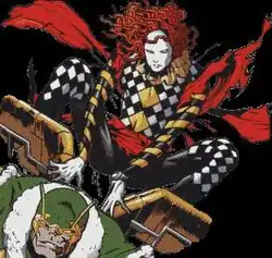 In the alternate timeline of the Flashpoint event, Rag Doll works as a contortionist in the freak show in Haly's Circus.[17] During the attack of the Amazons, Rag Doll is rescued by Resistance member Vertigo.[18] When looking for reinforcements, Rag Doll is killed by an Amazon by breaking Rag Doll's back over her knee.[19] It was unclear whether this Rag Doll had undergone surgery to perform his contortions, or had been born with the talent.