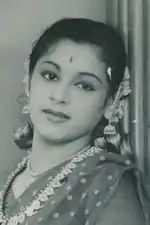 Ragini (27 March 1937 – 30 December 1976) was an Indian actress and dancer. She was the youngest of the Travancore Sisters; Lalitha, Padmini and Ragini.[1] She started her acting career in the mid-1950s along with her sister Padmini and has acted in movies of different Indian languages, including Malayalam, Hindi, Tamil and Telugu. She also starred opposite Shammi Kapoor in film Mujrim (1958). She played the role of Parvati opposite Trilok Kapoor who played Shiva in the 1962 film Shiv Parvati. The era of dance in Hindi cinema is considered to have begun with the entrance of Ragini and other South Indian actresses.[2] Ragini died of breast cancer in 1976. She had acted in many dramas also.[3]