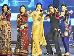Khanna at the music launch of Ra.One (2011) along with Shah Rukh Khan and Pooja Gaur, Giaa Manek and Sanaya Irani
