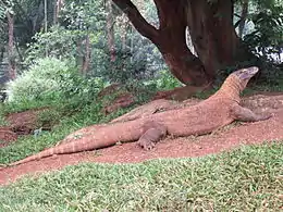 Ragunan Zoo (Indonesian: Kebun Binatang Ragunan) is a zoo located in Pasar Minggu, South Jakarta, Indonesia. The zoo has an area of 140-hectare (350-acre). The zoo has an aviary and a primate centre, and employs over 450 people.[2] Many of the animals in the zoo are endangered and threatened from all parts of Indonesia and the rest of the world. There are a total of 2,288 animals inside the zoo.[3] Laid out in a lush tropical habitat, rare animals such as crocodile, gorilla, orangutan, tapir, anoa, sumatran tiger, babirusa , and peacocks are given ample room. The zoo is located in South Jakarta and is easily accessible through the Jakarta Outer Ring Road and TransJakarta Corridor 6 bus (green color).[4]