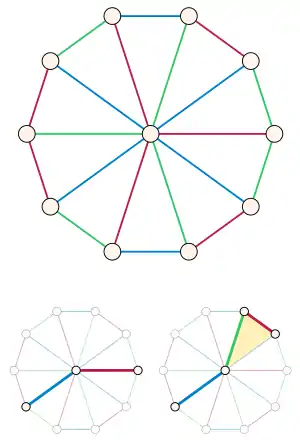 The above shows that in terms of the number of vertices, the upper bound is the best possible in general. In fact, a rainbow coloring using colors can be constructed by coloring the edges of a spanning tree of in distinct colors. The remaining uncolored edges are colored arbitrarily, without introducing new colors. When is 2-connected, we have that .[2] Moreover, this is tight as witnessed by e.g. odd cycles.