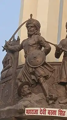 Raja Devi Bakhsh Singh[1][2][3] (Hindi: राजा देवी बख्श सिंह, Urdu: راجا دیوی بخش سنگھ) was a British-era King from Gonda, Uttar Pradesh. He was born in 19th century AD. He became popular because of 1857 revolt. He is represented as symbol of communal harmony, his name and the works done by him is still highly respected in neighbouring districts. Today there are few people who know his name but at that the time of 1857 revolt, he displayed valour and bravery and even encouraged harmony between Hindu & Muslim.