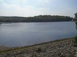 Construction of the reservoir was authorised by an Act of Parliament obtained in 1847, and the engineer Thomas Hawksley designed an earth dam which was 85 feet (26 m) tall at its highest point and 1,490 feet (450 m) long. The reservoir was finished in 1857, and impounded 73 million imperial gallons (330 Ml) of water when full.[2]