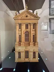 Opinion is divided as to whether John Wood the Elder designed the "Town House",[3][4] however the ostentatious decoration is not a style he uses elsewhere in Bath. Richard Boyle, 3rd Earl of Burlington, has also been suggested as the architect.[5][6] The enhanced decoration with rustication, Corinthian pillars and decorated pediment may have been incorporated purely to demonstrate the fine carving qualities of Bath Stone.[7]