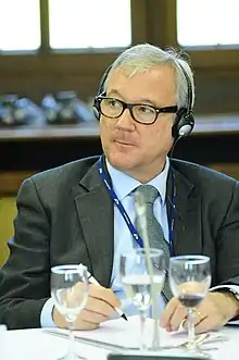 Valcárcel has since been serving as Vice-President of the European Parliament and a member of its Committee on Regional Development.[1] In his capacity as vice-president, he is also in charge of overseeing the parliament's research service and library; relations with national parliaments; and relations with the Committee of the Regions and the European Economic and Social Committee.[2]