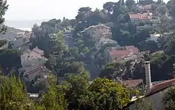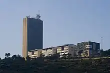 Denia[1] (Hebrew: דֵּנְיָה; other spellings Danya, Dania, Denya) is a district of Haifa, Israel, located on Mount Carmel. Denia and its associated neighborhoods capture the southernmost part of Haifa's jurisdiction area, which is also the highest-elevated topographically, and make up the city's altogether most affluent as well as least densely populated residential borough, with a population count of slightly more than 11,000 in 2008.[2] It lies approximately 5 kilometers in a beeline from downtown Haifa (whereas twisting roads due to intervening hills and wadis make actual distance bigger) and is crossed by Aba Hushi Avenue, which has made the district sometimes be referred to as the "Aba Hushi Axis". It is bordered by Nesher to the east, Nave Sha'anan to northeast, Ahuza to the north, Tirat Carmel to the west and the Mount Carmel National Park, among which portions of Hof HaCarmel Regional Council are interspersed, to the south. The University of Haifa's main campus, with its identifiable Eshkol Tower, is located in the borough.