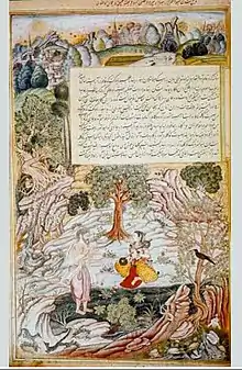 ![]() Rambha tries to seduce Shuka, painting by Raja Ravi Varma | |
