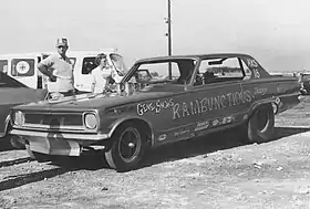 Debuting in 1969, Rambunctious is a reproduction 1969 Dodge Charger on a Logghe Stamping Company chassis. It became one of the most famous (and popular) funny cars in NHRA history.[1] It would record NHRA's first official 200 mph (320 km/h) pass, driven by Gene Snow and powered by a Keith Black-prepared Chrysler hemi.[2]