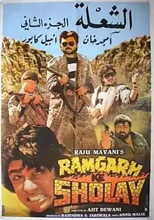 Ramgarh Ke Sholay (transl. Flames Of Ramgarh) is a 1991 Indian Hindi-language parody film directed by Ajit Diwani, starring Vijay Saxena, Kishore Bhanushali and Amjad Khan. The film parodies the 1975 Bollywood film Sholay[1]