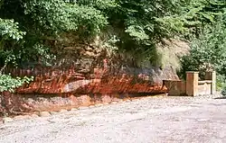 The part of the park located in the valley, usually referred to as the Ramlösa Valley, has an open character with large grassy areas interspersed with a number of smaller trees and shrubs, where rhododendrons are abundant. This part has an intimate feel as it is bordered on both sides by steep slopes with compact greenery, giving the impression of being enclosed. In the eastern part is the Water Pavilion, built in 1919–1921, just south of the original iron spring, marked by the exposed rock wall, stained red by the ferruginous water. Various concerts and events are held here from time to time, especially on Well Day. At the centre of the open grassy area, towards the valley slope, is another spring, the old alkaline spring. This is enclosed by an artificial cave, now enclosed by a fence. The valley is home to a number of unique biotopes for lichens, fungi, insects, birds and plants.