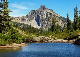 Rampart Lakes area a set of contiguous freshwater reservoir lakes located on the south slope of Alta Mountain, in Kittitas County, Washington. Self-issued Alpine Lake Wilderness permit required for transit within the Klonaqua Lakes area.[3] The lake is a popular area for hiking, swimming, and fishing cutthroat trout.[1]