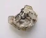 The workings of the original lead mine were mainly in the so-called Great Limestone,[5] which was laid down in the Namurian and is generally 10 to 20 metres thick.[6] The lead sulphide mineral galena PbS was mined as an ore of lead, and the sulphides pyrite FeS2 and sphalerite ZnS were also present. Many carbonates occur there, including ankerite Ca(Fe,Mg)(CO3)2, barytocalcite BaCa(CO3)2, calcite CaCO3, siderite FeCO3, smithsonite ZnCO3 and witherite BaCO3, as well as the non-carbonate minerals fluorite CaF2 and baryte BaSO4.[1]