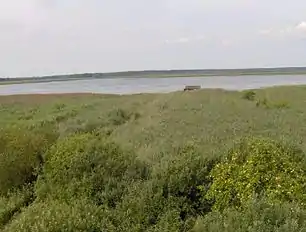 The site is a shallow, overgrown lake in the Vistula Delta near the Baltic Sea coast that was once part of the Vistula Lagoon.[3] The lake itself holds a variety of hydrophilic plants, including an array of nymphaeaceae, and is surrounded by marshes dominated by common reed beds (Latin: Phragmites) that transition into wooded wetlands of black alder (Latin: Alnus glutinosa).[3][4]