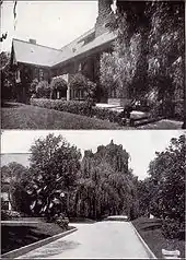 Completed in 1908, the three-story, 42-room mansion was designed by Frederick Louis Roehrig. Roehrig also planned the landscape gardens and layout of the grounds.[3] The mansion is located on a 2.8-acre (1.1 ha) site that also includes a formal garden and carriage house with chauffeur's quarters.[4][5] When the house was completed, the Los Angeles Times published a full-page article accompanied by numerous photographs. The Times called it "among the finest homes in Los Angeles" and one of architect Roehrig's "best efforts." The Times described the exterior of the mansion as follows: